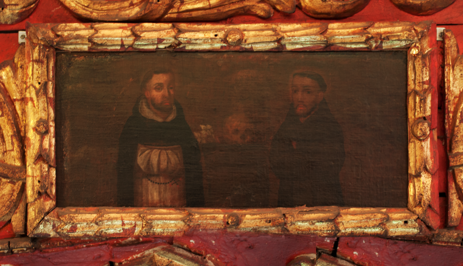 Una de las obras en las que se exalta la figura de estos personajes es esta pequeña imagen en la que podemos apreciar, a la izquierda, al santo español Domingo de Guzmán (1170-1221), fundador de la orden de los dominicos; y, a la derecha, al italiano san Francisco de Asís (Ca.1182-1226), precursor de la orden franciscana, cuyo atributo iconográfico es el cráneo que se encuentra en el centro de la imagen y que hace referencia a la brevedad de la vida y a la banalidad del mundo material.