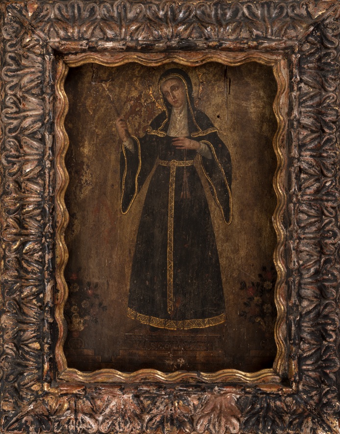 Sin embargo, estos no son los únicos elementos de la pintura. Recientemente, como parte de los procesos de conservación, se retiró el marco de la obra y se encontró que en su borde inferior aparece la imagen de la santa muerta, velada por sus compañeras.